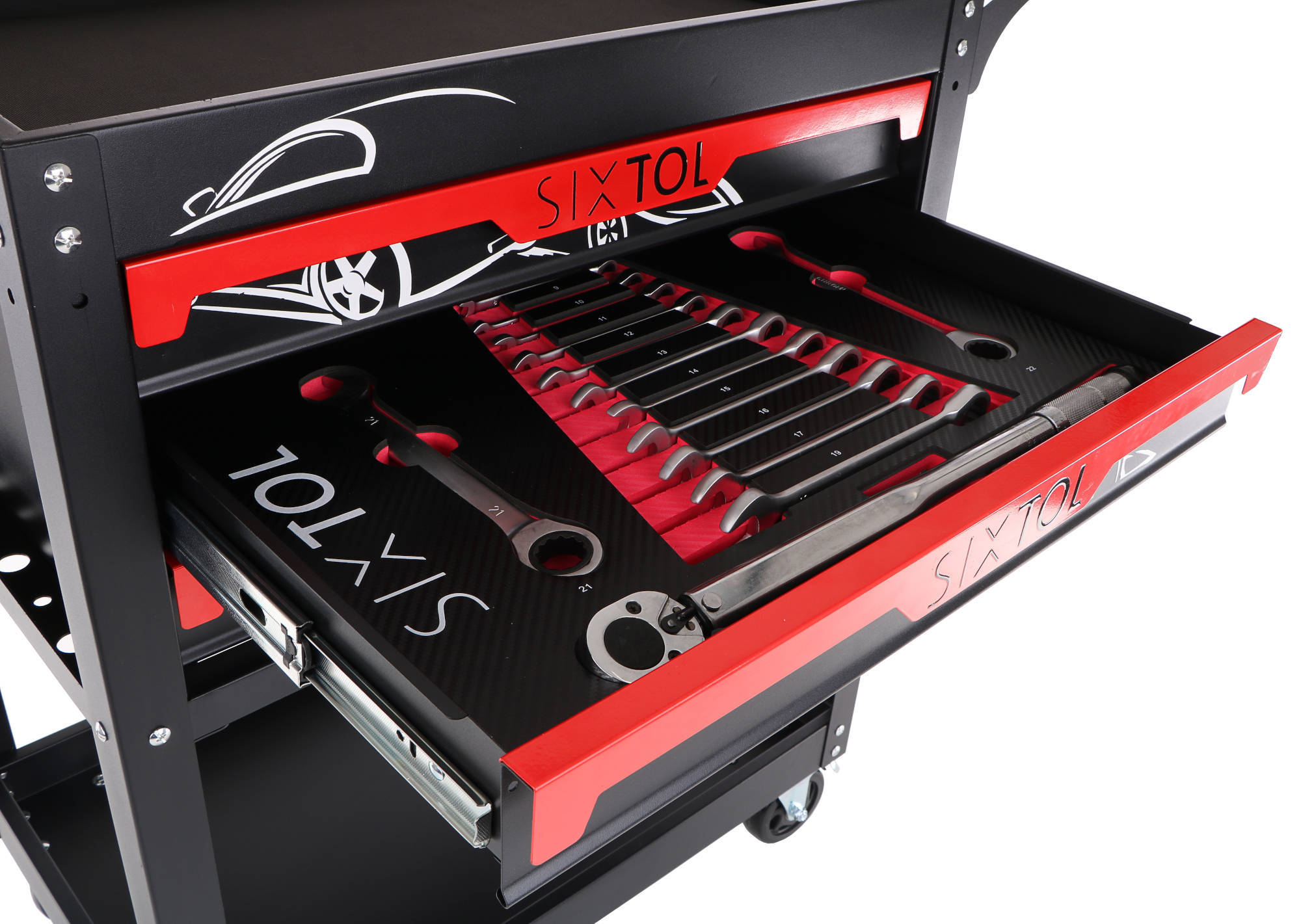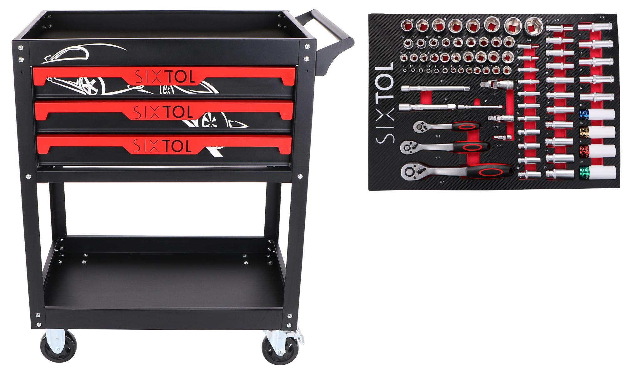 Dílenský vozík s nářadím MECHANIC TROLLEY JASON 80, 3 šuplíky, 1 police, 80 ks nářadí SIXTOL
