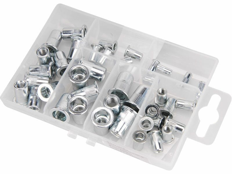 Matice nýtovací, sada 40ks, M3-M8, ocelové pozinkované, ocel FORTUM