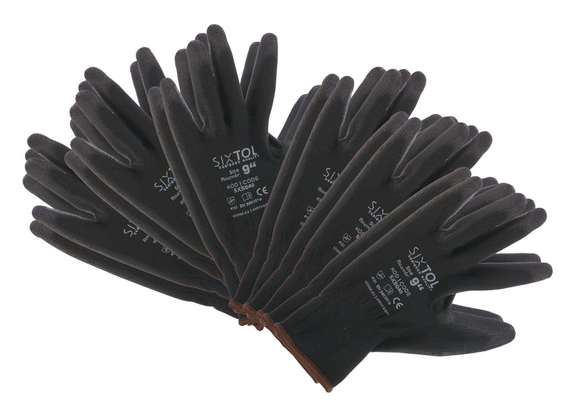 Rukavice pracovní z polyesteru polomáčené v PU GLOVE PE-PU 9, černé, vel 9", 6 párů SIXTOL